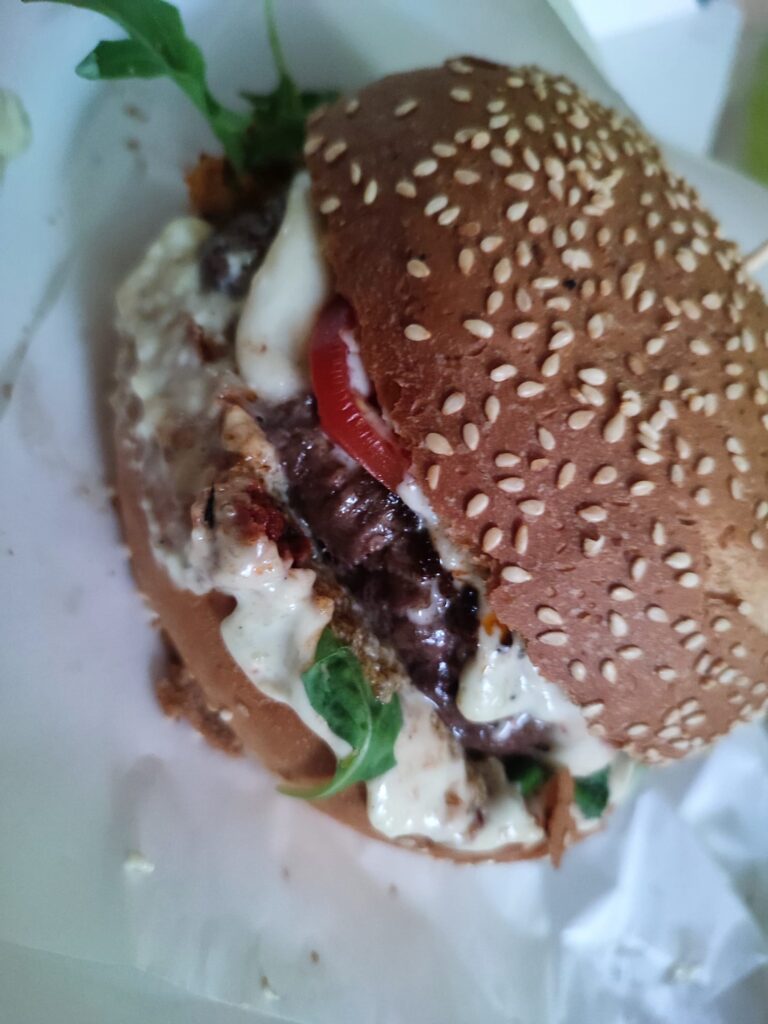 Nie było sosu bbq, którego ogólnie nie lubię. Ciekawe połączenie smaków. Że mięsko super to już wiecie z wcześniejszej szamki w tym miejscu. A co do smaków: tu mięsko, serek, czipsik serowy, zieleninka, ale nie sałata, wszystko świetnie gra ze sobą